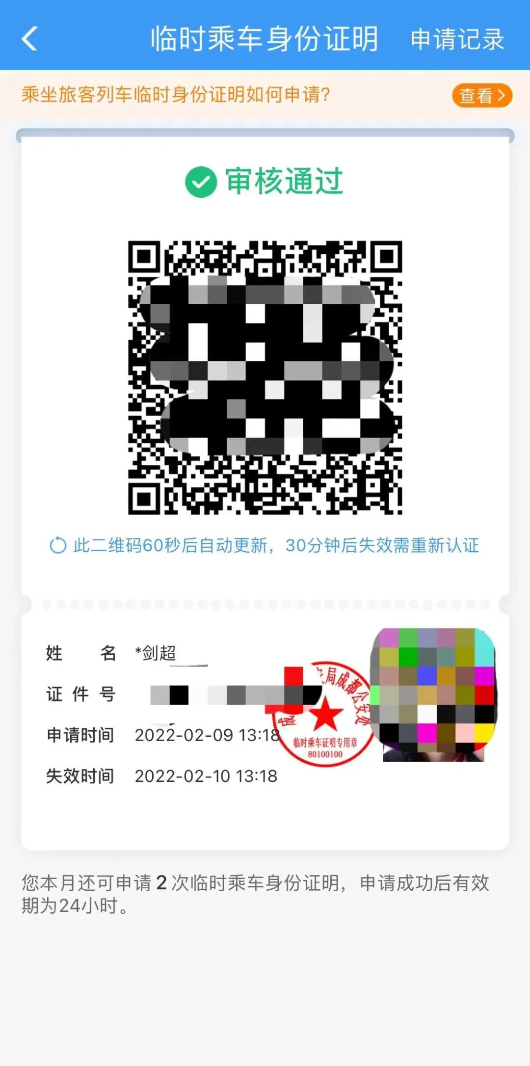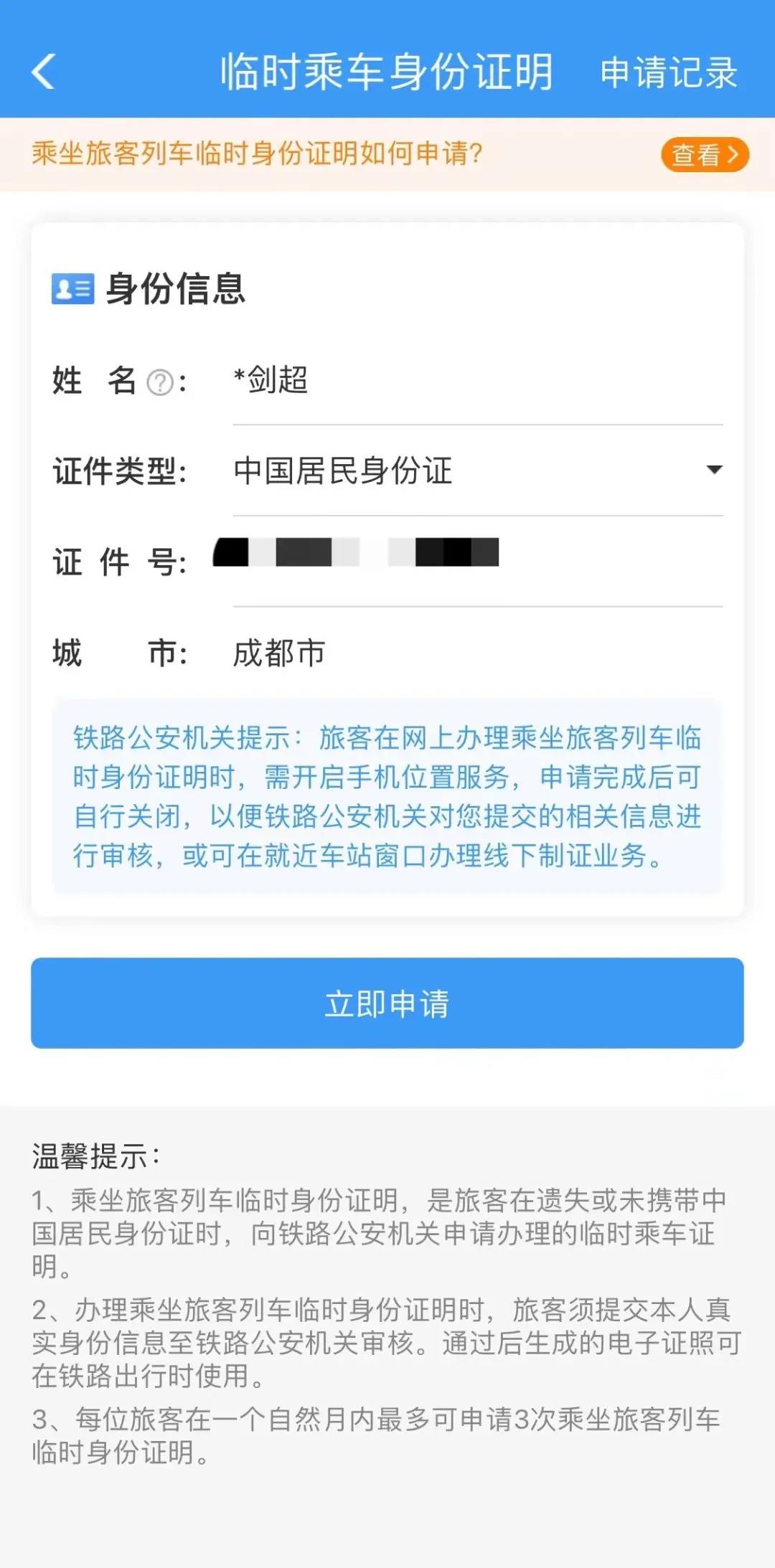 按照以上步骤操作后,即可申领电子临时乘车身份证明。