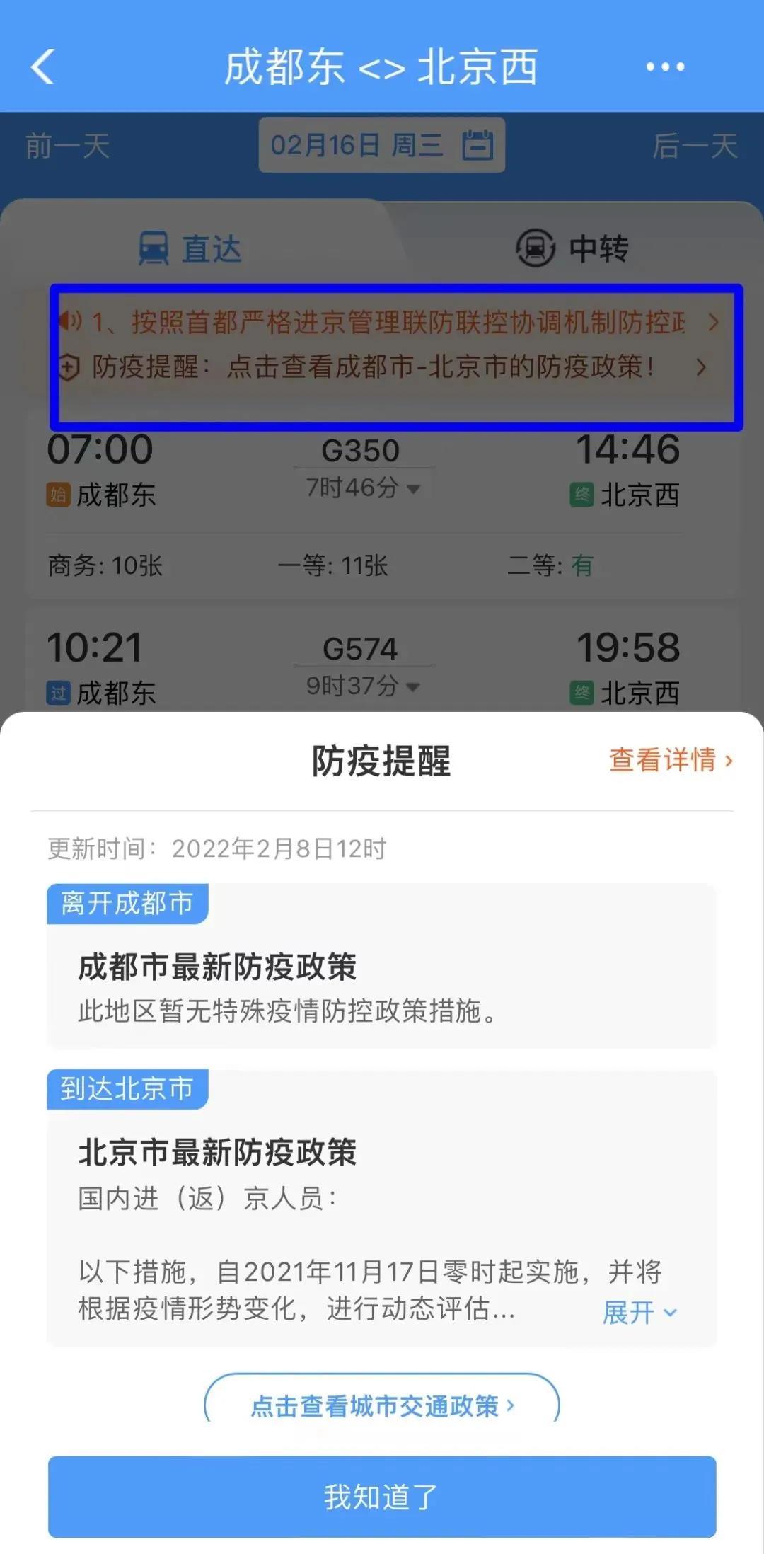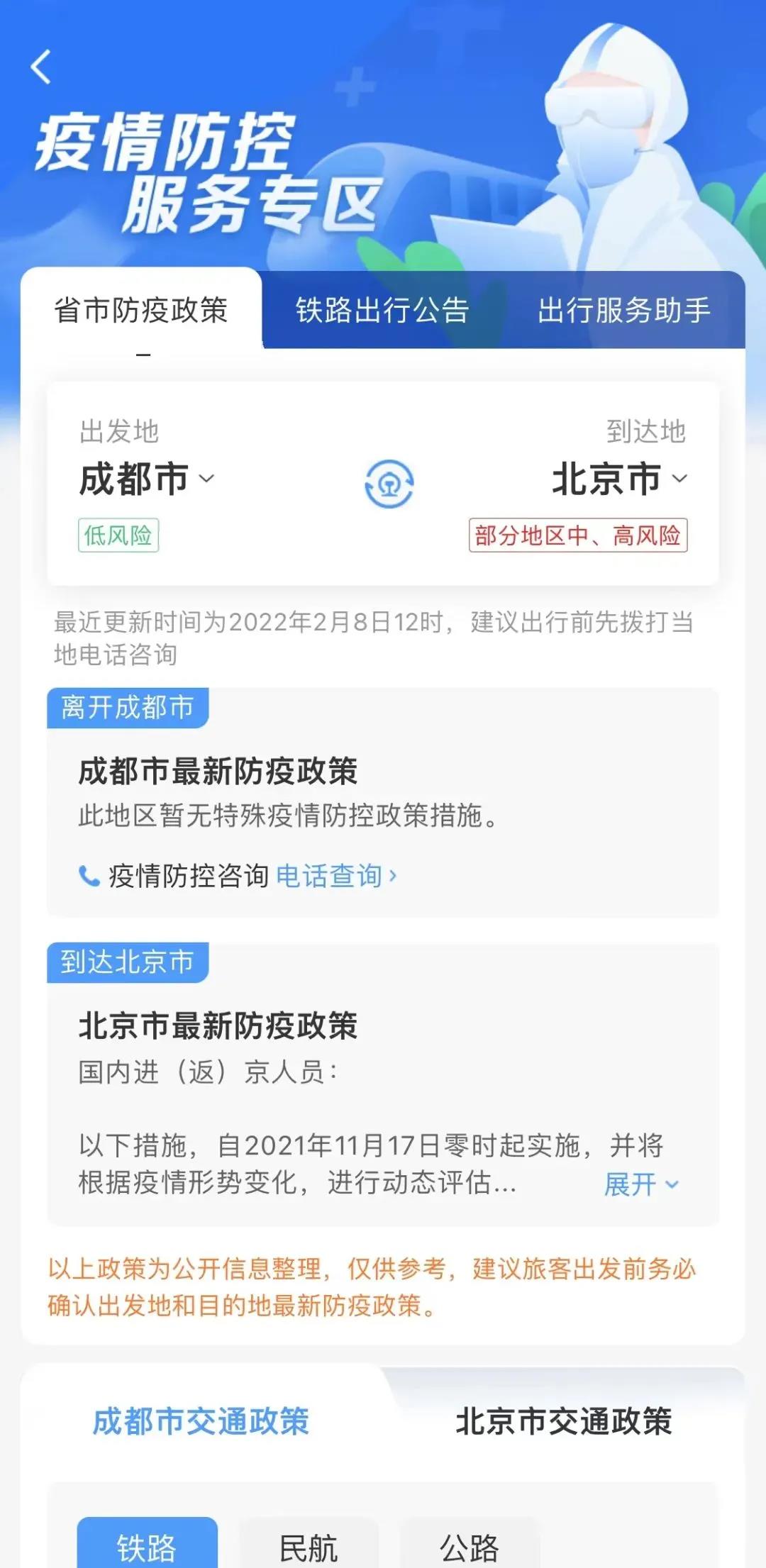 目前,12306App提供多种途径查询各地疫情防控实时政策。