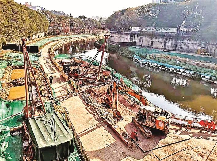 昨日上午,龙华区中心医院斜对面的观澜河下的观澜大道改造工程-区间共线段项目,因为下雨暂停施工。作为区建筑工务署节后首批复工的重大项目之一,南起石清大道,沿线途经翠幽路、观天路、观澜人民路、泗黎南路、龙华大道等,北至高尔夫大道的观澜大道改造工程于去年11月16日正式开工。该项目目前正在对北线引水改造工程和观澜河大桥施工两个重要施工节点加紧施工,力争在4月15日汛期前完成这两处涉河施工项目。