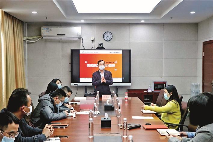 心理专家为抗疫人员开展心理情绪管理专题辅导。
