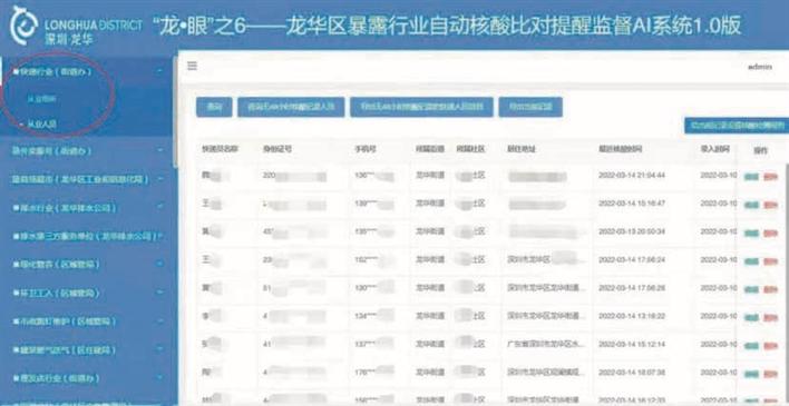 龙华区暴露行业自动核酸比对提醒监督AI系统上线。