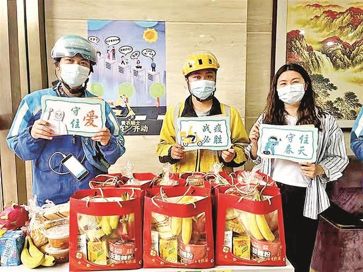 龙华区为有需求的外卖骑手提供住宿安置,派送问候卡、暖心包、防疫包。