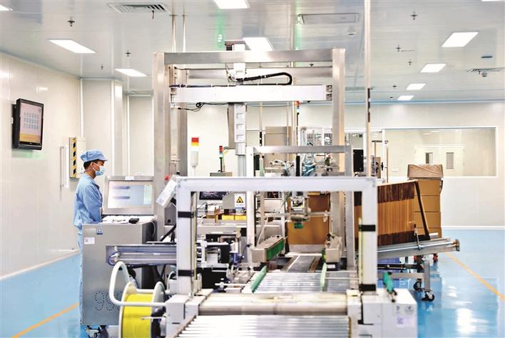 近日,记者走进位于华润三九总部的观澜工厂,这个总建筑面积1.7万平方米的生产工厂,共有5个GMP生产车间,7条自动化产线,主要生产口服固体制剂、乳膏剂、中药配方颗粒等。只见洁净的车间内,只有寥寥数个工人的身影,嗡嗡作响的机器承担了绝大部分的制药工作,从原料的清洁、称重、搅拌到生产、包装、运输几乎全部实现自动化。