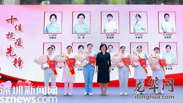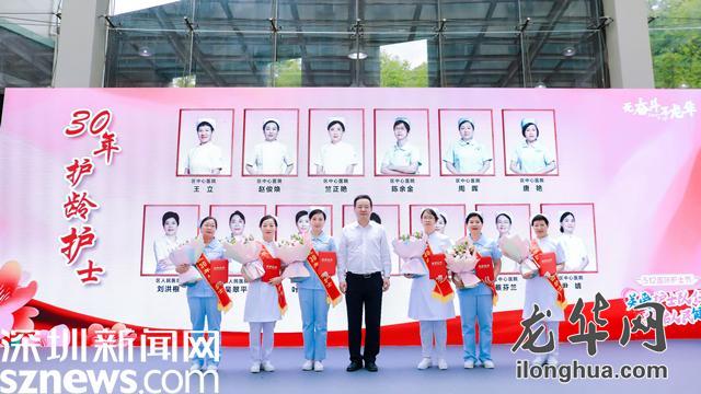 读特客户端·深圳新闻网2022年5月12日讯(记者 胡安坤)今年5月12日是第111届“国际护士节”。5月11日下午,龙华区采用“主会场+分会场”视频直播的形式进行相关慰问活动。区委书记王卫,区领导蓝涛、黄立敏、商澎涛在区委大楼大堂出席主会场活动,分别为龙华区十佳优秀护士、十佳抗疫先锋、优秀护理管理者、优秀护理团队、30年护龄护士代表颁发荣誉证书、赠送鲜花,并向全区护理工作者致以节日的问候。