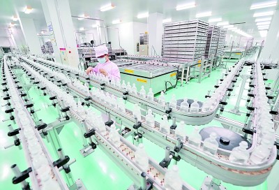 河北石家庄一家制药有限公司的工人在医药生产车间工作。新华社发