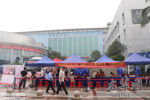 龙华区委卫生工委联系深圳市血液中心在龙华会堂、龙华区清湖行政服务中心和龙华文化广场共设置3个临时采血点,每个采血点各安排2台捐献车负责采血,加上6月14日刚建成启用的观澜湖捐血站及龙华天虹购物中心捐血站,活动当天,龙华区共设有5个采血点可供市民进行献血。