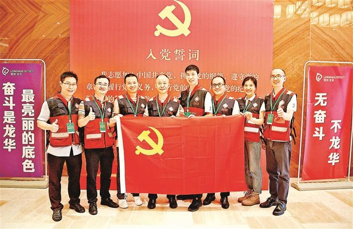 龙华疾控党组织驻流调专班党员代表宣誓合影。