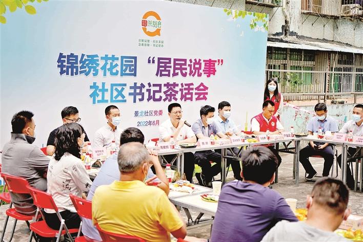 龙华街道党工委书记参加锦绣花园“居民说事”社区书记茶话会。