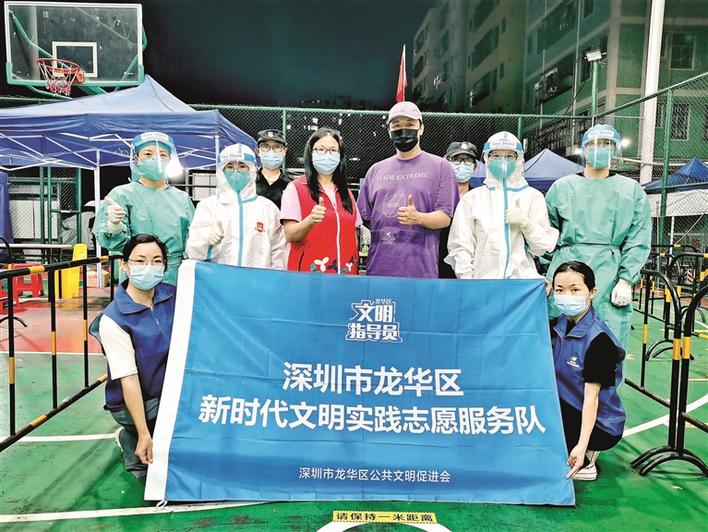 今年以来,龙华区公共文明促进会以新时代实践阵地为根据地,召集超过10万人次文明指导员、志愿者前往辖区各大核酸检测点位协助开展秩序维护、粤核酸信息登记等疫情防控工作,同时加大文明防疫宣传力度,对防疫意识薄弱、不佩戴口罩出行的市民派发口罩,劝导居民做好自身防疫,提高自我保护能力。