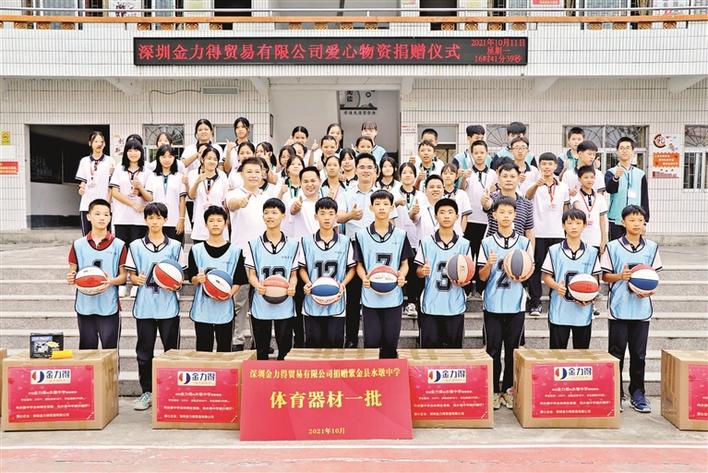 龙华爱心企业向紫金县水墩中学捐赠爱心物资。