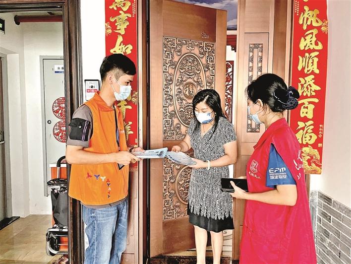 鹭湖社区6名街区长组织各小区党支部、义工、物业人员等身穿“红马甲”“橙马甲”,围绕社会主义核心价值观等文明知识,走家串户,展开宣传。每进一家,街区长都细致地为居民普及相关知识,讲解创建文明城市的重要性,并征求居民对创建文明城市工作的意见建议。