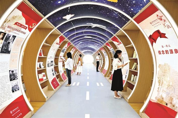 龙华青年参观格致中学新时代文明实践点“奋斗·启航”红色家书展。