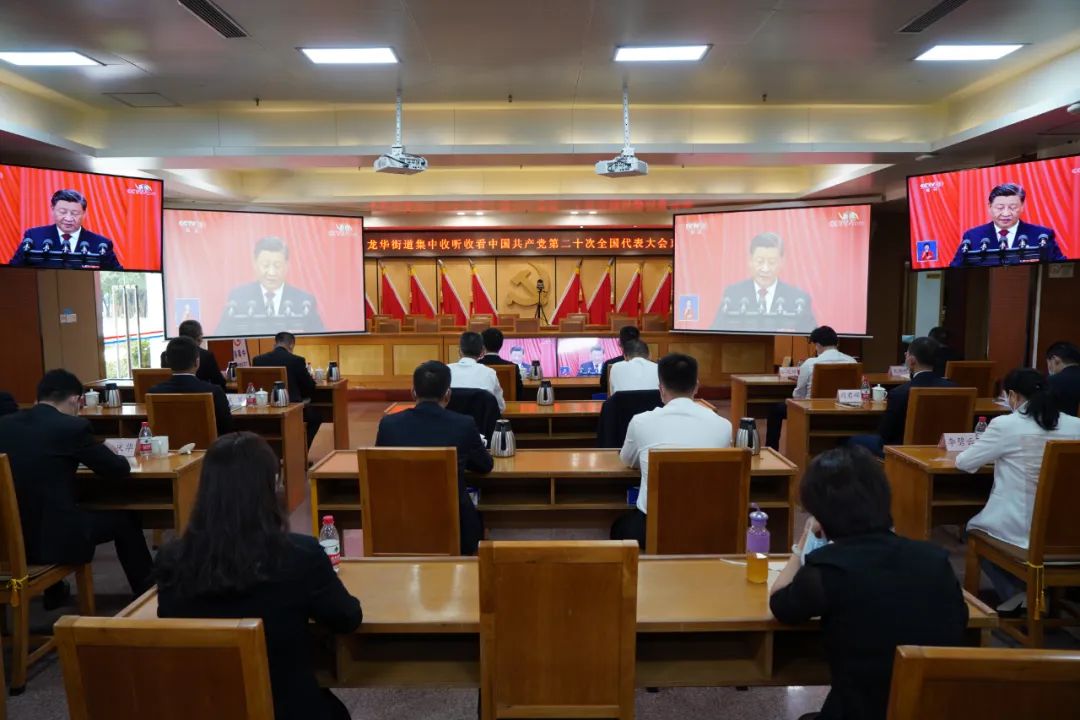 10月16日上午,龙华街道组织全体干部职工集中收听收看党的二十大开幕会直播盛况。