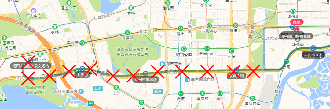 双方向取消“甘角岭、散屋村、田心社康中心、对面喊居民小组、田心社区、罗谷居民小组、新曲村、深圳高级中学东校区、深圳技术大学、同心外国语文源校区”等10对公交停靠站。