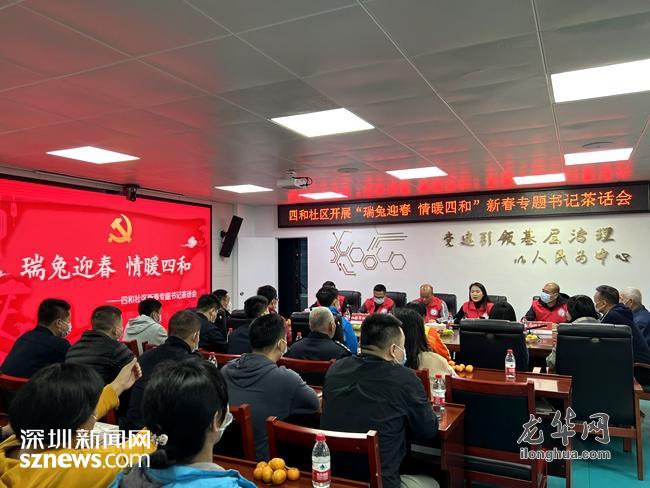 读特客户端·深圳新闻网2023年1月16日讯(记者 陶倩 通讯员 刘静 莫晓霞)“明年工作上一个新台阶”“爸爸妈妈身体健康”“赚更多的钱”......一大早,福城街道四和社区党群服务中心传来阵阵欢笑声,中心被各种红红火火的装扮包围,年味十足。1月12日,新春佳节将至,四和社区“以茶为媒”搭建与居民沟通桥梁,在社区党群服务中心举办“瑞兔迎春、情暖四和”新春书记茶话会,邀请老党员、先锋服务队队员、新就业群体、居民代表共20人,大家齐聚一堂,迎新春、谋发展、话未来。