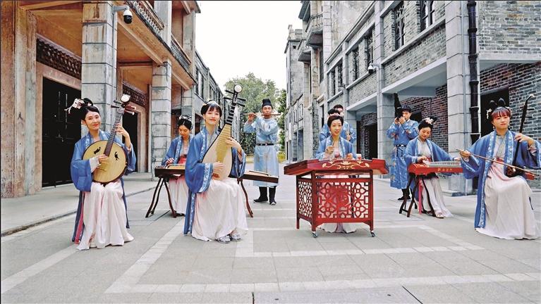 值得一提的是,这场音乐会所使用的原创歌曲、舞蹈等,均为龙华本土文艺骨干所创作,如为龙华景区打造的专属文艺作品与景点音乐IP《时间印记》,用通俗易懂、易于表达的歌舞,串联起龙华区特色景点,完成了一场穿越龙华时空的对话。