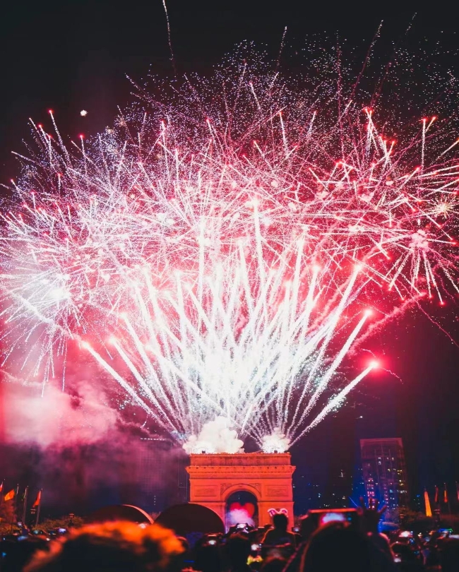 深圳世界之窗夜场烟花表演与春节气氛最搭,吸引大批游客观看。