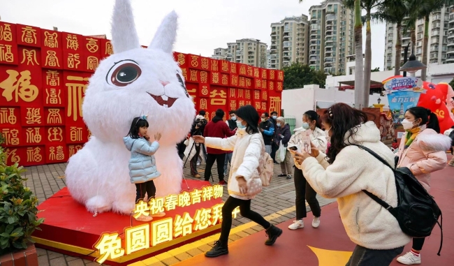 记者看到,在欢乐谷,2023中央广播电视总台春晚吉祥物“兔圆圆”“兔团团家族”主题文创惊喜亮相,吸引众多市民游客合照打卡。在深圳野生动物园,与兔有关的各种主题活动如“遇兔呈祥”新春游园会、兔年兔展、兔科普展、兔雕塑贺新春、夜场灯光秀“梦境光语”等轮番上演,为市民游客送上丰富多彩的兔年文化大餐。
