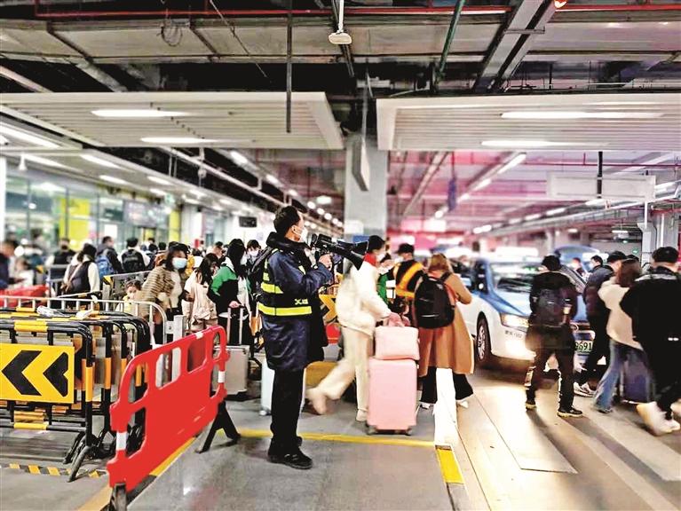 据了解,节后1月25日(年初四)深圳北站返程客流到达高峰,旅客到站量屡创新高,1月29日到达旅客量达到29.97万人,比2022年历史高点还超出约11.5%,这给北站客流疏散工作带来了空前巨大的压力。市交通运输局龙华管理局未雨绸缪、提前规划,经充分论证后在节前对致远中路进行管道化改造,优化车行线路,分散北站P2停车场进口的交通压力,保障了高峰期北站交通基本通畅。同时对出租车场站进行扩容改造,增加蓄车区,扩充一条上客通道,让东广场一楼出租车站运能提升约50%。节后每天安排100多人在深圳北站周边道路及交通场站执勤,严厉查处出租车拒载、讲价、违停候客等违规行为,维持交通运输秩序;在出租车场站采用多通道多车同时上客模式,大幅提高出租车场站运营效率,高峰时段每小时可疏散3000多人。