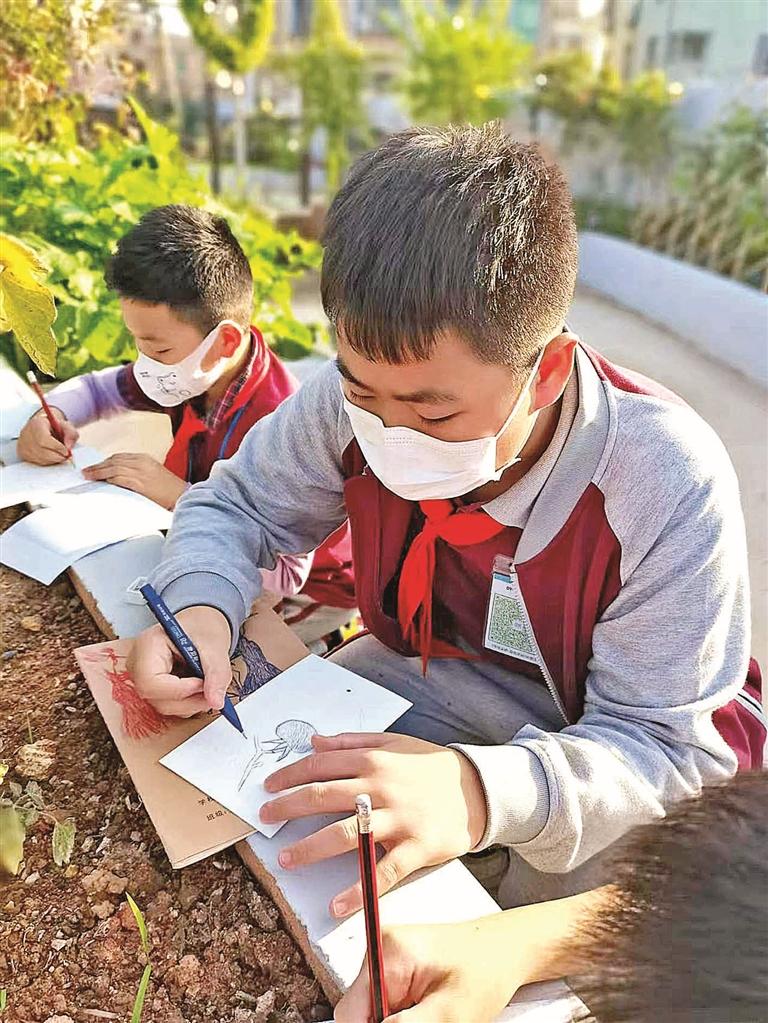 走进“爱艺园”,一花一树皆风景,孩子们在这里触摸土壤、观察动植物、亲近自然,不仅令人赏心悦目,更结合学科资源,成为课堂教育的一部分,成为孩子们最生动的自然课堂。