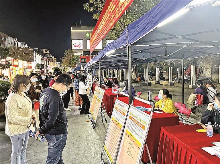 本次活动打出“线上+线下”组合拳,观澜街道结合新澜社区街心公园夜晚人流量大的实际特点,于2月9日至11日、2月16日至18日,每日晚上6点半到10点半举办线下招聘会,打造“人才夜市”,让居民“逛着夜市”找工作。同时,依托龙华公益网、设置二维码收集求职者信息等方式,做到线上“全年不打烊,全流程追踪,全方位跟进”。