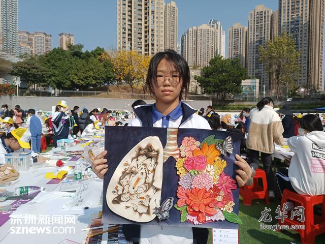“我画的是人体的器官肺,以两边不同的形式展现‘吸烟有害健康’的画作主题。”来自清泉外国语学校的参赛选手彭小倍介绍了她的作品。来自龙华第二小学的袁可可分享了她现场书写的作品《健康诗》:“寡欲清心能益寿,素餐淡食可延年。”现场一位带着小朋友来参加比赛的妈妈在采访中也表示:“我家小孩每年都参加这样的比赛,赛后她的自我健康卫生意识增强了很多!”