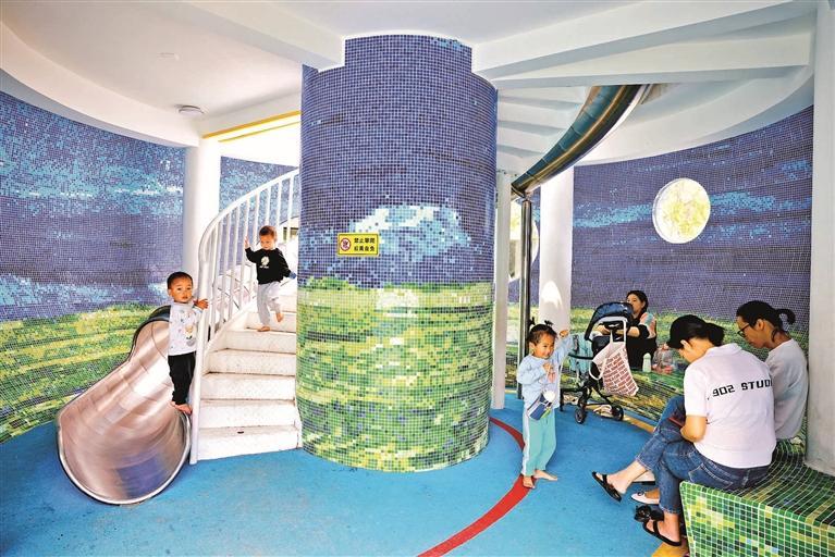 随后,王卫一行来到观湖街道上围二路与平安路交界处,实地调研鹭湖瓷园街心公园。该公园占地面积6217平方米,以瓷文化为主题,集游玩、休憩、运动于一体,北侧为大片自然山体,绿意流淌,生态优美。南侧紧临龙华外国语学校,西侧为大型居住社区,人口聚集,东侧与永丰源瓷文化创意产业园隔街相对。永丰源国瓷是这里明显的场地特征,也是龙华区鲜明的文化符号,将“瓷园印象”概念融入公园景观设计,截取瓷器制作流程,粘连不同空间,在有限的场地内,形成循序渐进的游园体验。
