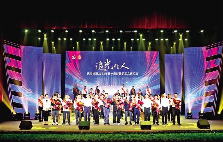 龙华新闻讯(记者 王雪敏 通讯员 谢冰/文 记者 蔡维泽/图)奋斗的青春,励志的故事,共同做逐梦前行的奋斗者。4月26日,“追光的人”民治街道2023年“五一”表彰暨职工文艺汇演在龙华高级中学九号剧场举行。民治街道党工委、区总工会相关领导出席活动,与来自民治辖区各行各业的600多名劳模代表、职工代表以及工会干部欢聚一堂,共同庆祝劳动者的节日。