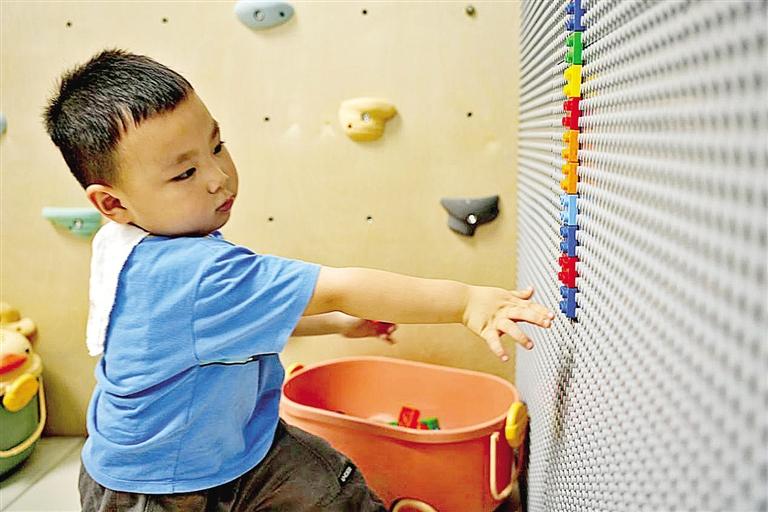 小朋友在赖屋山社区“幸福家庭角”玩积木。
