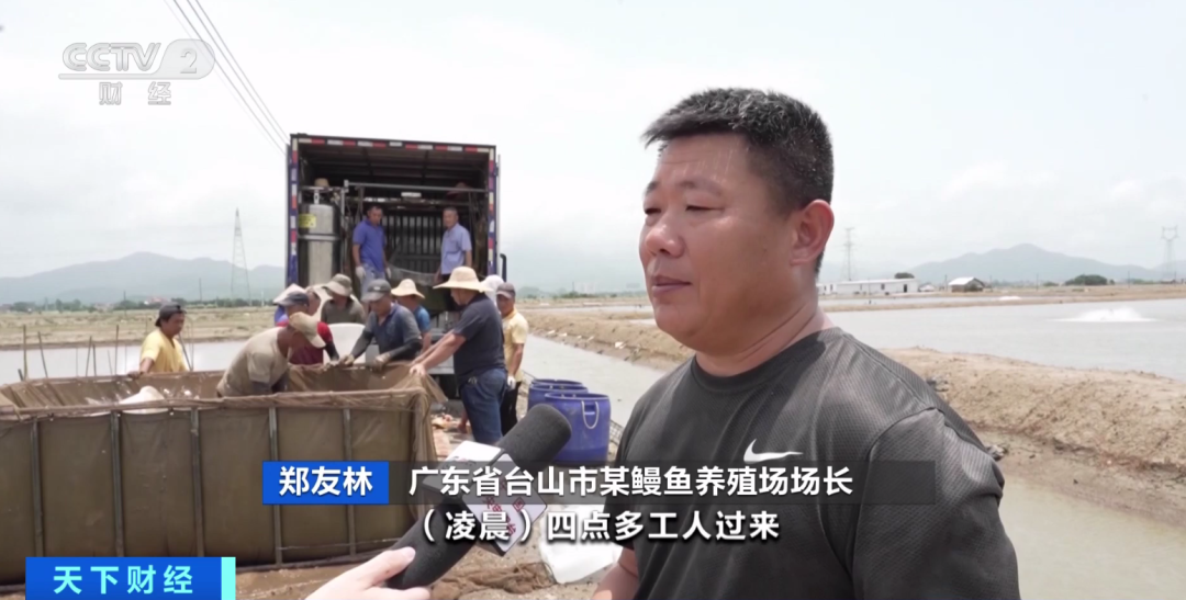 广东省台山市某鳗鱼养殖场场长 郑友林:凌晨四点多工人过来,今天要出活鳗六七吨,一吨净赚两万多元。