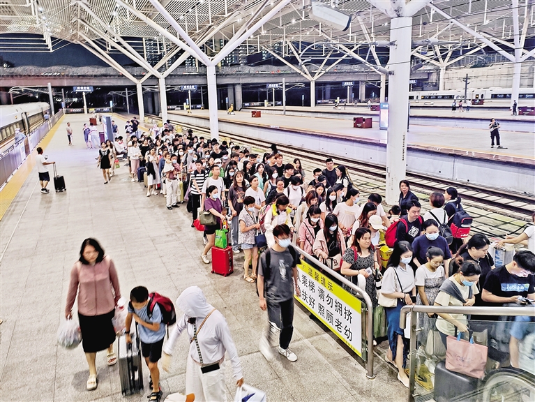 龙华新闻讯(记者 王雪敏 通讯员 郭成海 田恬/文 记者 蔡维泽/图)记者从深圳铁路部门获悉,自6月21日起持续五天的铁路端午假期运输顺利收官。今年的端午假期,出行客流始终保持高位,铁路部门充分挖掘运输潜力,科学安排运力,打造良好乘车环境,全面提升服务品质,满足旅客旅游、探亲等需求,让旅客出行体验更好。