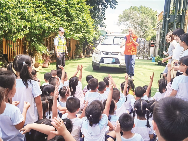 龙华新闻讯(记者 宋彪 通讯员 陈媛/文 记者 陈建华/图)“我们幼儿园想要开展交通安全宣传培训,社区可以给我们幼儿园链接资源吗?”近期,福城街道桔塘社区收到辖区多所幼儿园发来的开展交通安全培训需求。为此,在暑假到来之前,桔塘社区交安站相继在辖区新塘幼儿园、珑门名苑幼儿园等3所幼儿园开展交通安全“进校园”活动,为幼儿园的孩子们上交通安全课。