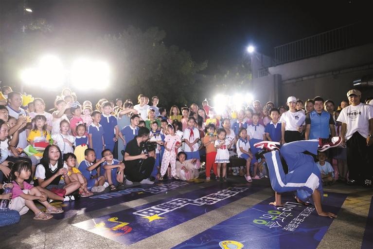 音乐会在辖区嘻哈乐队倾情演绎的《喜欢你》《给你一瓶魔法药水》的歌声中拉开帷幕。随后,婉转优美的《穿越时空的爱恋》古筝演奏,曲调轻快的《稻香》吉他弹唱,欢快喜悦的《好运来》舞蹈……17首表演曲目让观众大饱耳福,沉浸其中。活动现场,街区明星荟萃,灯影交汇,掌声雷动,欢笑不断。
