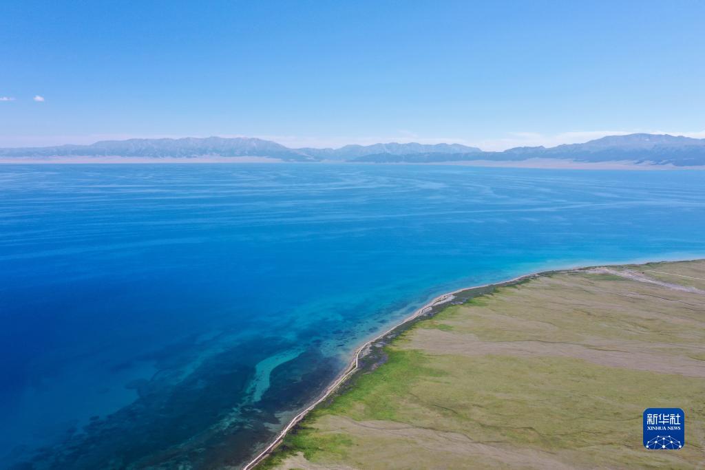 这是7月25日拍摄的新疆赛里木湖(无人机照片)。新华社记者 丁磊 摄