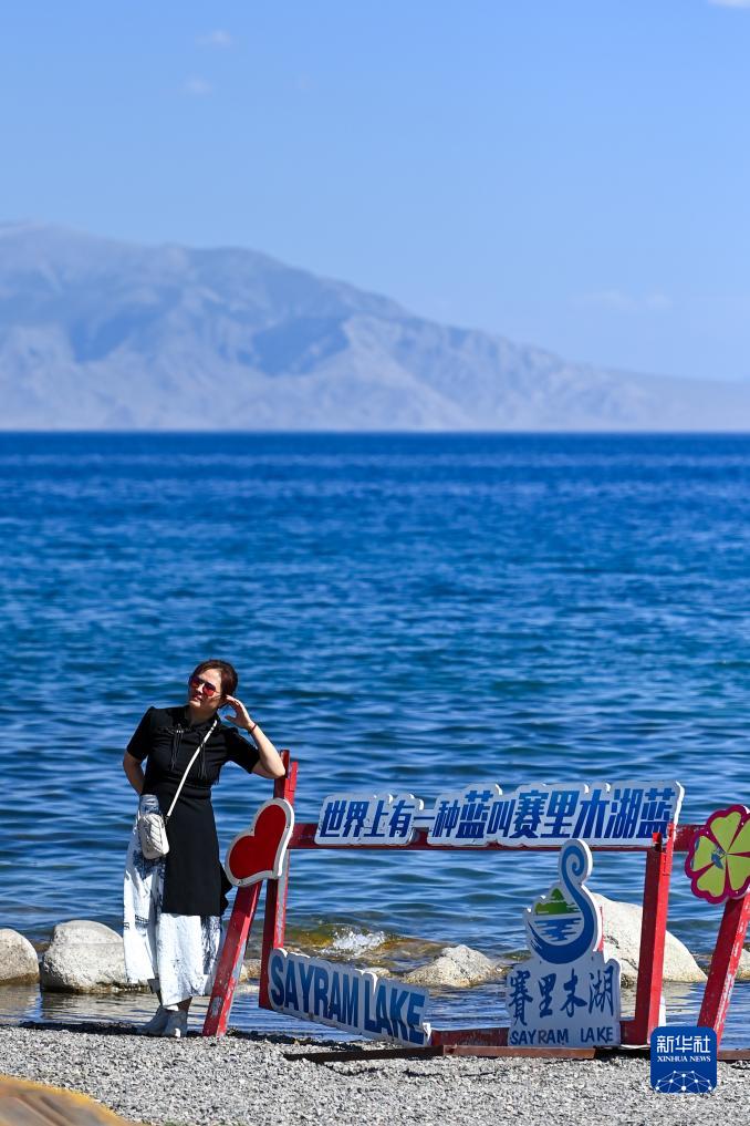 眼下正值新疆旅游旺季,位于博尔塔拉蒙古自治州的赛里木湖风光宜人,吸引各地游客前来观光。