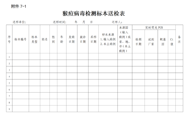 实验室检测具体要求详见附件7《猴痘病毒实验室检测技术指南》。