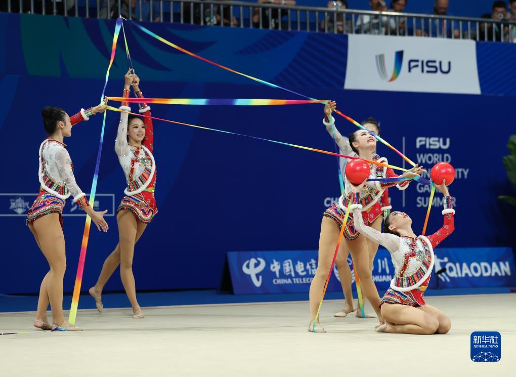 当日,第31届世界大学生夏季运动会艺术体操项目集体全能决赛第二轮在成都举行。最终,中国队以57.150分的总成绩获得冠军。