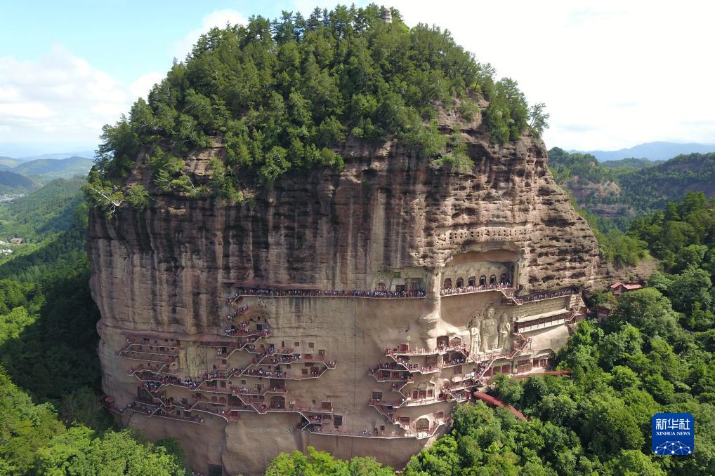 这是7月29日拍摄的麦积山石窟(无人机照片)。