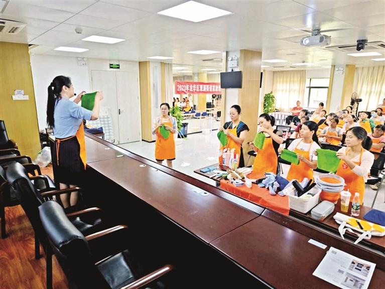 龙华新闻讯(记者 吴春华 通讯员 陈彩婷 宋福良 文/图)为进一步推动“南粤家政”工程高质量发展,培育家政服务人才队伍,促进居民就业创业,近日,观澜街道2023年第二期“南粤家政”居家服务公益培训在大富社区党群服务中心正式开课,30名辖区居民参与。