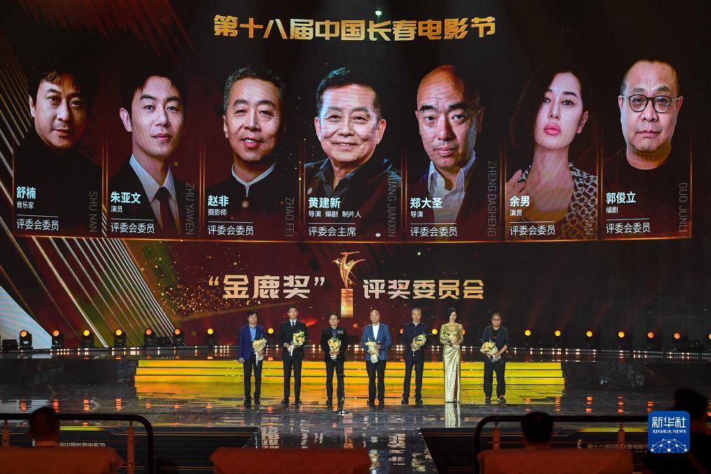 8月28日,第十八届中国长春电影节评委会成员在开幕式现场亮相。新华社记者 张楠 摄