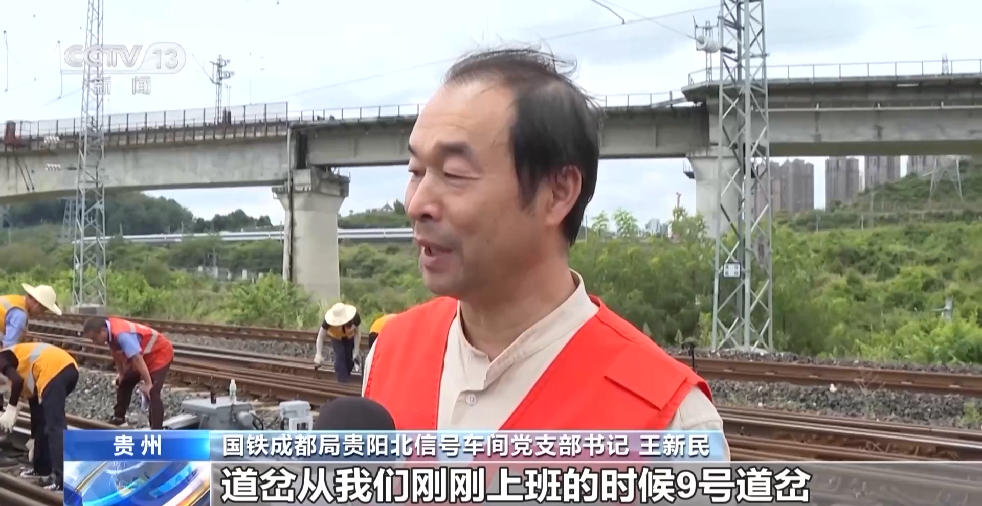 国铁成都局贵阳北信号车间党支部书记 王新民:道岔从我们刚刚上班的时候,9号道岔,以后12号、12号(以后)18号,特别是我们高铁是42号道岔,根据列车通过的速度不一样,道岔号数大小不一样。