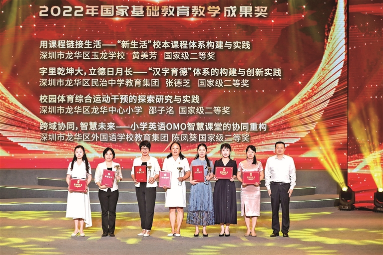 龙华区领导为荣获省市重点教育奖项和国家基础教育教学成果奖代表进行表彰。