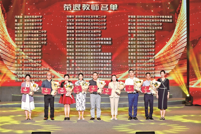 龙华新闻讯(记者 张瑜/文 蔡维泽/图)9月10日上午,“九月颂歌 光阴的故事”龙华区教育系统第39个教师节庆祝大会召开,表彰2023年龙华区教育工作先进单位和先进个人、2023年龙华区30年教龄和荣退教师代表,为获评省市重点教育奖项和国家基础教育教学成果奖代表颁奖,并向全区教育工作者致以节日问候。区委副书记、区长雷卫华,区领导吴振兴、赵妍妍出席活动,并为获奖代表颁奖。