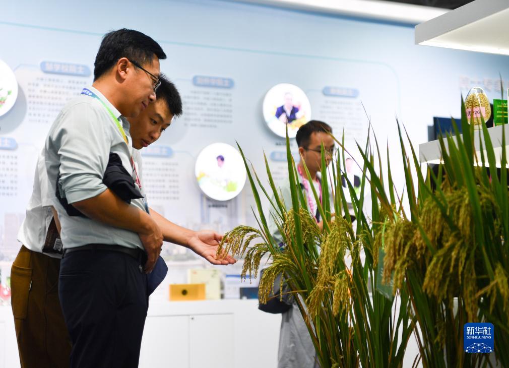 9月19日,观众在杨凌农高会参观农作物样品。新华社记者 张博文 摄