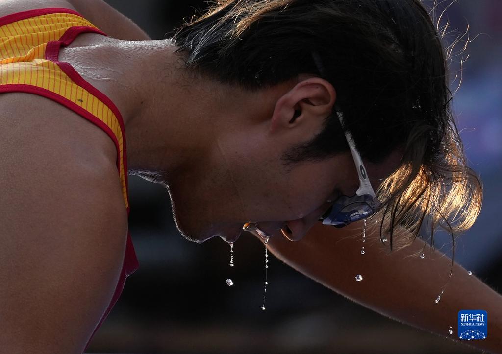 9月24日,中国选手李澍寰在激光跑比赛后调整休息,他以1484分的总成绩获得季军。当日,杭州亚运会现代五项男子个人决赛在浙江省杭州市富阳区富阳银湖体育中心举行。新华社记者 万象 摄