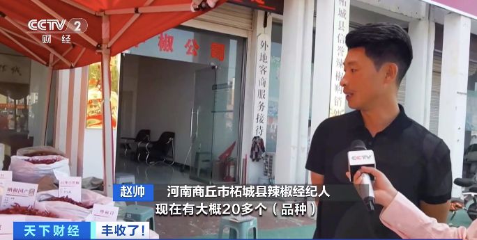 总台记者 齐鹤:河南省柘城县的干椒交易市场是全国最大的干椒集散地之一。早上7点,整个市场交易非常火热。除了成堆的辣椒之外,还有非常多的客商,这里聚集了全国几十种不同品种的辣椒,而且每年都会有新的辣椒品种在这里上市。全国各地的辣椒经纪人也会到这里挑选心仪的辣椒品种。