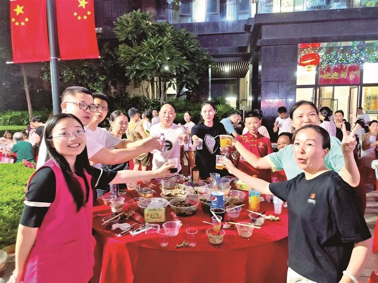 看着居民之间胜似亲人的共饮画面,小区党支部书记陈炳芳感受颇深,从筹备举办、号召居民参与到宴会结束,小区党支部可谓是亲力亲为,看到晚宴顺利举办,她开心不已,“社区是我们共同的家园,这样的邻里节活动,不仅饱了口福,更重要的是加深邻里感情。晚宴结束后,很多居民都来跟我商量沟通,希望以后逢年过节都举行类似的宴会,建立起守望相助的邻里关系。”