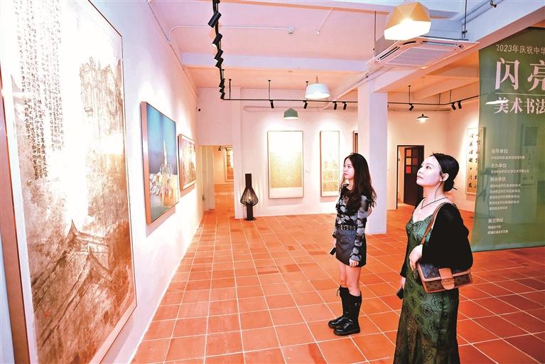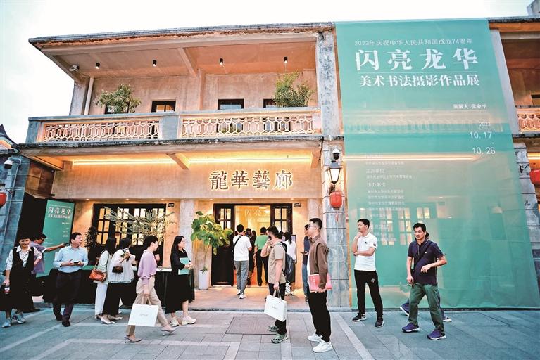 10月17日下午,2023年庆祝中华人民共和国成立74周年“闪亮龙华”美术、书法、摄影作品展开幕式在观澜古墟举行。