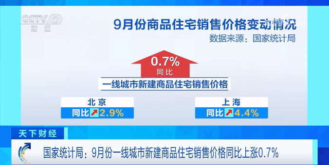 今天上午,国家统计局发布9月份商品住宅销售价格变动情况。总体来看,一线城市新建商品住宅销售价格环比持平、同比涨幅扩大,二手住宅价格环比转涨。