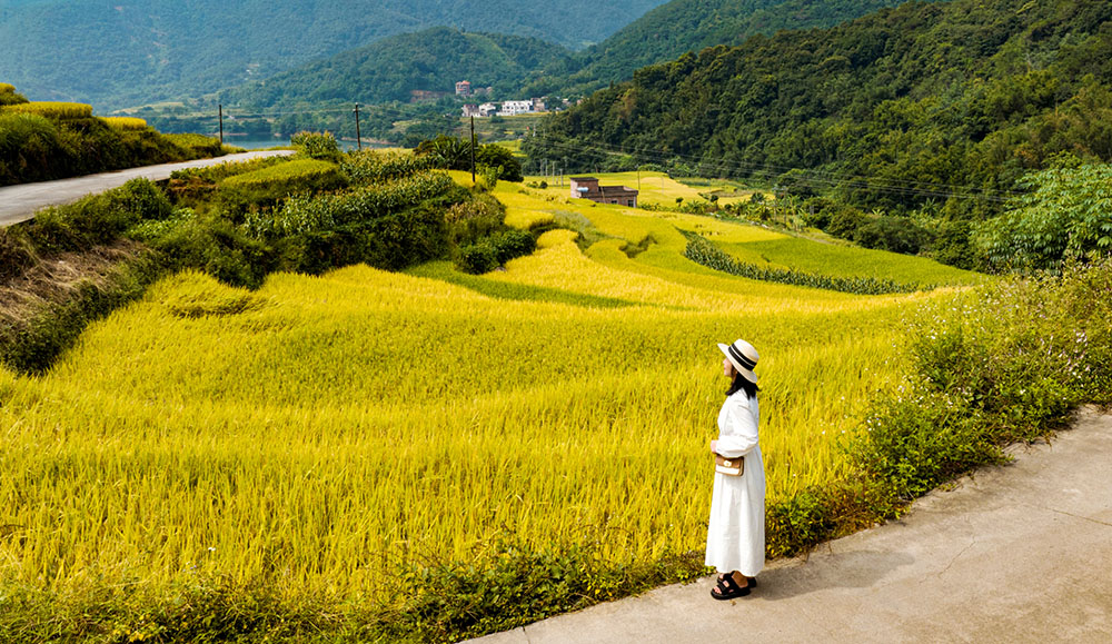 风吹稻浪,又到了一年秋收时,广西各地的水稻进入收获期。北流市民乐镇的梯田也迎来最佳观赏期,层层叠叠的金色稻田,分布于群山绿树间,村庄错落点缀其间,交相辉映,美不胜收。(钟勇)